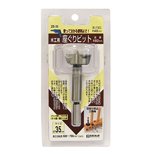 木材の止まり穴加工・貫通穴あけなどの木工作業に欠かせない、穴あけ工具です。木質、木材の形状を問わず美しく仕上がります。 特殊工具鋼刃を使用、切れ味抜群、切り口が非常に美しく仕上がります。 加工穴を削り取っていくので底面フラットな加工が容易に出来、丸棒の差し込みなどに非常に便利です。 チャック能力:10mm用 ボール盤・電気ドリル用 サイズ35mm 全長約92mm 深い穴加工約40mm