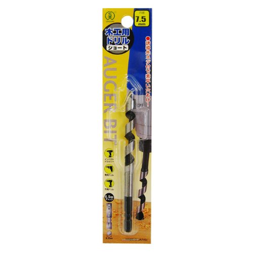 インパクトドライバーにも対応 小型誘導先ネジ:誘導先ネジにより、回転力で木材に食い込み、楽に素早い穴あけが行えます。小さなネジ山と細かいネジピッチにより穿孔抵抗を少なくし、1回の充電で、より長時間の作業を可能にしています。 刃部:焼入れを施した特殊合金により、優れた耐久性を実現。 溝部:研磨加工仕上げにより、木クズのハケに優れ、能率の良い作業ができます。 六角軸シャンク:インパクトドライバーにも対応し、シャンク部には熱処理(HRC43±1)を施しています。 端面角度:インパクトドライバー装着時にスキ間なくフィットする精密角度。 穴径:7.5mm 軸径:6.35mm六角軸