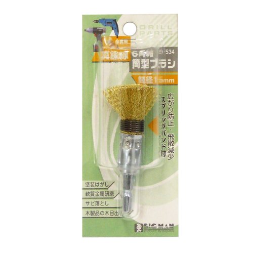 狭い箇所・コーナー・溝底等のサビ落し、塗装はがし等の研削作業に最適です。 真鍮線の使用で腰が柔らかくソフトなあたりです。 真鍮・銅・アルミ等の軟質金属の研磨や木製品の木目出しにも使えます。 広がり防止・飛散減少スプリングバンド付。 電気ドリル、充電インパクトドリル又はフレキシブルシャフトに取り付けてお使い下さい。 ブラシ類は《折れ飛び》が発生します。ケガのないよう特に注意して下さい。 筒径:15mm 材質:真鍮線
