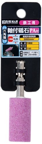 金属加工・バリ取り 刃物・工具の研削六角軸:6.35mm 形状:円筒型 サイズ:φ20×38mm 粒度:#60 最高許容回転数:5000rpm