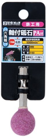 金属加工・バリ取り 刃物・工具の研削六角軸:6.35mm 形状:球型 サイズ:φ19mm 粒度:#60 最高許容回転数:5000rpm