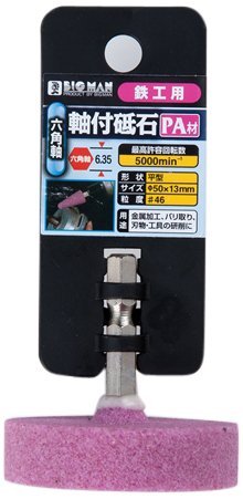 金属加工・バリ取り 刃物・工具の研削六角軸:6.35mm 形状:平型 サイズ:φ50×13mm 粒度:#60 最高許容回転数:5000rpm