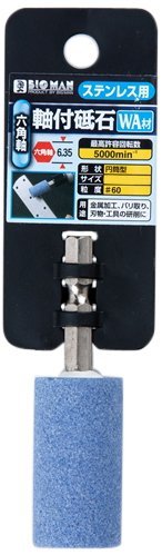 金属加工・バリ取り 刃物・工具の研削六角軸:6.35mm 形状:円筒型 サイズ:φ20×38mm 粒度:#60 最高許容回転数:5000rpm