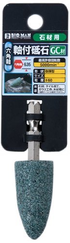 石材・タイル加工・ガラス工作・木材用に ※磁器タイルには使用できません六角軸:6.35mm 形状:砲弾型 サイズ:φ20×38mm 粒度:#60 最高許容回転数:5000rpm