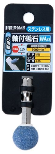 金属加工・バリ取り 刃物・工具の研削六角軸:6.35mm 形状:球型 サイズ:φ19mm 粒度:#60 最高許容回転数:5000rpm