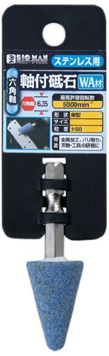 金属加工・バリ取り 刃物・工具の研削六角軸:6.35mm 形状:傘型 サイズ:φ20×30mm 粒度:#60 最高許容回転数:5000rpm