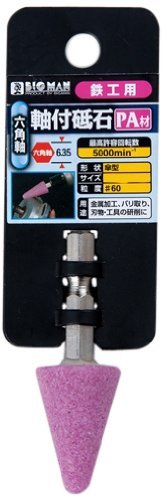金属加工・バリ取り 刃物・工具の研削六角軸:6.35mm 形状:傘型 サイズ:φ20×30mm 粒度:#60 最高許容回転数:5000rpm