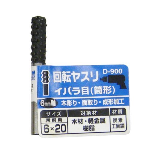 木彫り、面取り、成形加工に。 荒削用 サイズ:6×20 軸径:6mm 対象材:木材・軽金属・樹脂 材質:炭素工具鋼 形状:イバラ目(筒形)