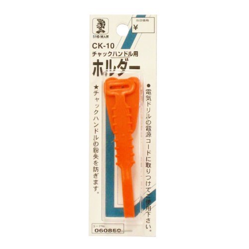 チャックハンドルの紛失を防ぎます。 電気ドリル用チャックハンドルの紛失防止用ホルダーです。 T型チャックハンドル専用です。 電気ドリルの電源コードに取りつけてご使用下さい。 使用できるチャックハンドル: バーの長さ:90mmまで バーの径:6mmφまで