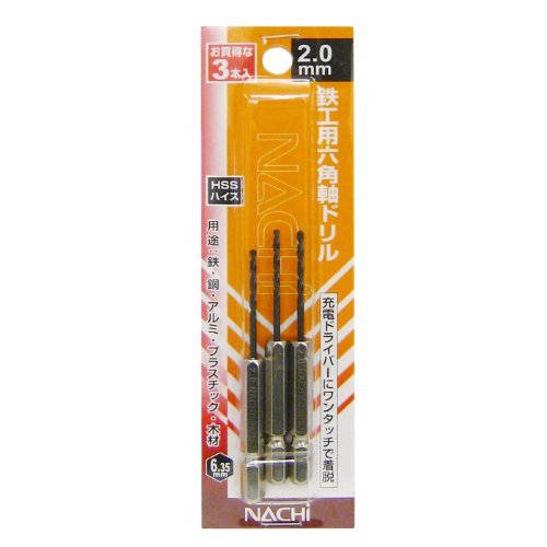 ナチ 六角軸鉄工ドリル3本組 2.0ミリ
