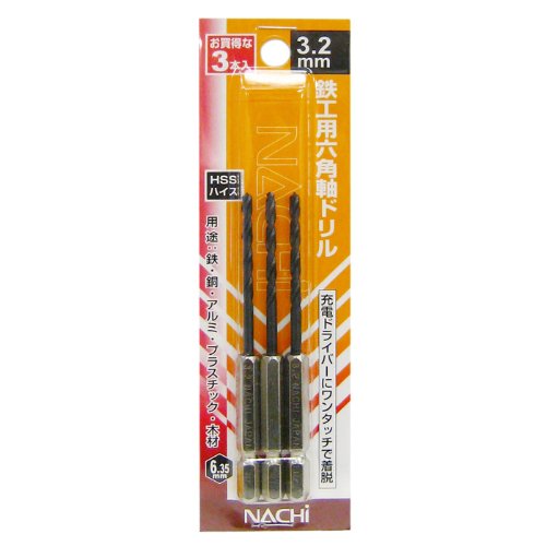 ナチ(NACHI) 六角軸 鉄工用ドリル 3.2ミリ 3本組 (金属・金工)