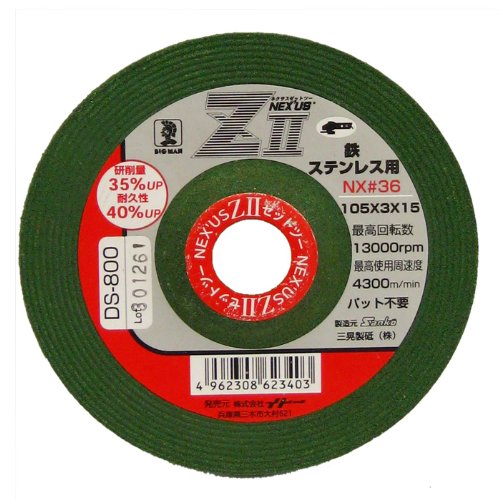 研削量 35%アップ 耐久性40%アップ 鉄・ステンレス用 105×3×15 最高回転数 13000rpm 最高使用周速度 4300m/min