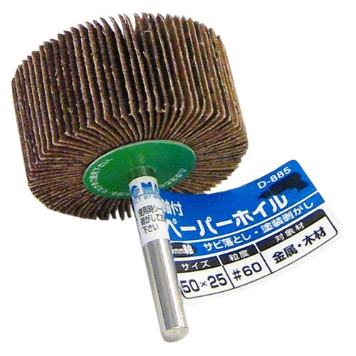 サビ落とし・塗装剥がしに。 サイズ:50×25 軸長:6mm 対象材:金属・木材 粒度:#60
