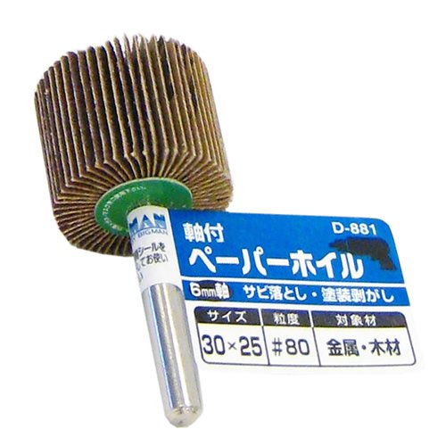 サビ落とし、塗装剥がしに。 サイズ:30×25 軸径:6mm 粒度:#80 対象材:金属・木材