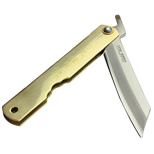 一刀流 謹製 肥後小刀 真鍮 磨き仕上げ 大 刃渡り 77mm ナイフ
