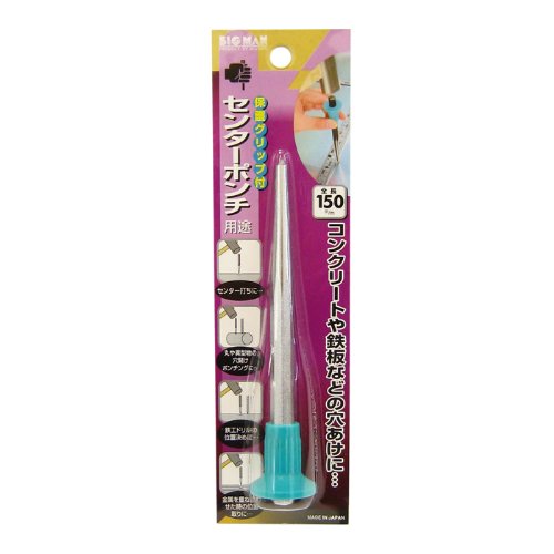 コンクリートや鉄板などの穴あけに。 センター打ちに。 丸や異型物の穴あけ、ポンチングに。 鉄工ドリルの位置決めに。 金属を重ね合わせた時の位置取りに。 手指に安全・保護グリップ付。 全長:150mm