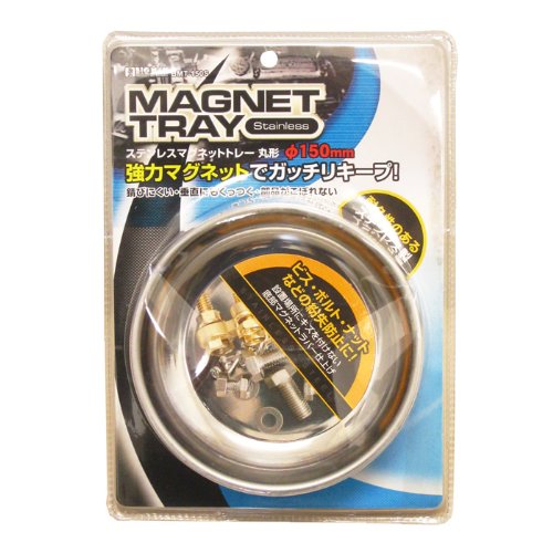 ビス・ボルト・ナットなどの紛失防止に 設置場所にキズを付けない底部マグネットラバー仕上げ。 強力マグネットでガッチリキープ 錆びにくい。垂直にもくっつく。部品がこぼれない。 耐久性のあるステンレス製。 サイズ:φ150mm マグネット強度:1100ガウス(0.11ステラ) 材質:(マグネットトレー本体)SUS430、(ベースのカバー)PVC
