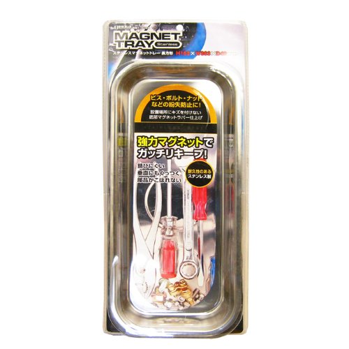 ビス・ボルト・ナットなどの紛失防止に 設置場所にキズを付けない底部マグネットラバー仕上げ。 強力マグネットでガッチリキープ 錆びにくい。垂直にもくっつく。部品がこぼれない。 耐久性のあるステンレス製。 サイズ:H163×W363×D40mm マグネット強度:1100ガウス(0.11ステラ) 材質:(マグネットトレー本体)SUS430、(ベースのカバー)PVC