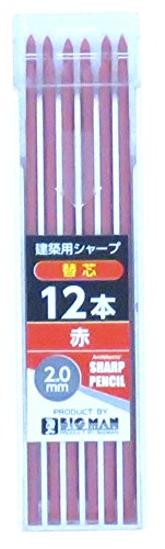 BIGMAN(ビッグマン) 建築用シャープペン 耐熱・硬芯 替芯12本入り 赤 BASS-R12