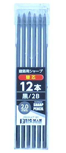 BIGMAN(ビッグマン) 建築用シャープペン 耐熱・硬芯 替芯12本入り 黒 2B BASS-2B12