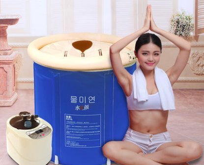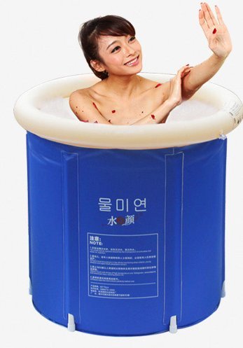 浴槽 お風呂の浴槽 折畳み浴槽 エアー浴槽 ビニールプール バスタブ ダブルサイズ 大人用 家庭用 (青)
