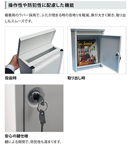 - 【大型郵便物もしっかり収納】スリムで薄型なボディながらもシンプルなフォルムは大容量を実現。投函口の幅は272mmありA4封筒のカタログや雑誌もラクラク入るサイズです。