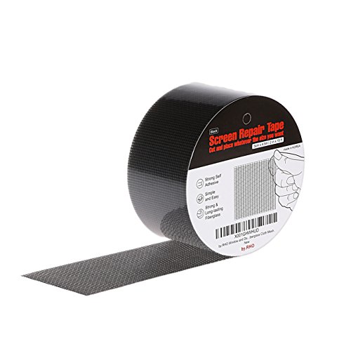 [by.RHO/ばいろ] ウィンドウ&ドア網戸の修理テープ 特大(5cm x4.5m)(Screen Repair Tape) 3層で強力な粘着&防水性能 即座に穴や裂け目を埋めるのに最適 虫の侵入を防止 修理キット ファイバーグラスメッシュ (黒) [並行輸入品]