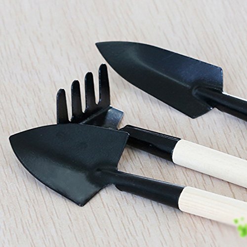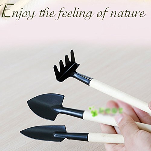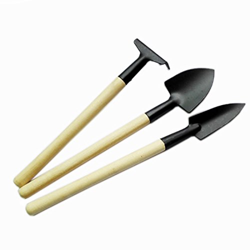 3pcs / setミニガーデン植物ツールは、木製ハンドルガーデニングツールショベルレイクで設定します。