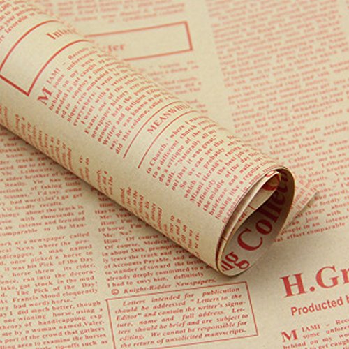 1個 ビンテージ新聞ラッピング紙 ギフトラップ ギフト包装紙 パッケージ紙 牛革 レッド