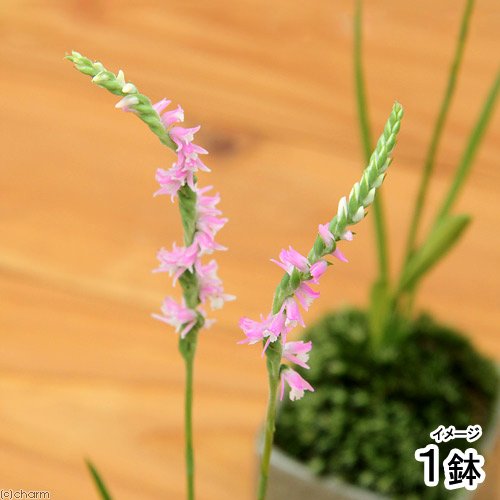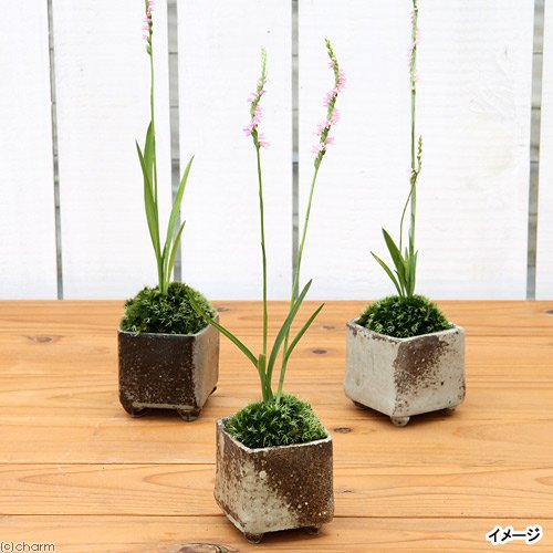 (盆栽)苔盆栽 おまかせ益子焼鉢植え ネジバナ(モジズリ)四角 小(1鉢) 本州・四国限定[生体]