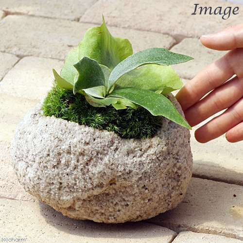 (観葉)苔盆栽 コウモリラン(ビカクシダ アルシコルネ) 抗火石鉢植え Mサイズ(1鉢)です。
