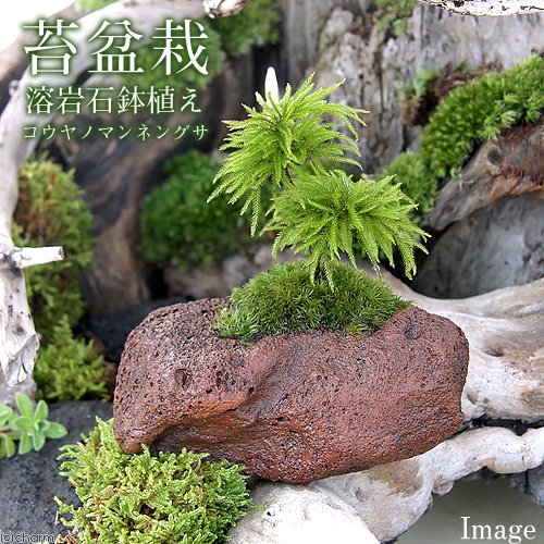 (観葉)苔盆栽 コウヤノマンネングサ 溶岩石 鉢植え(1鉢) 本州・四国限定[生体]