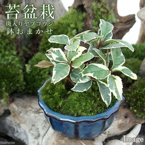(観葉)苔盆栽 斑入りヤブコウジ 鉢おまかせ(1鉢) 本州・四国限定[生体]