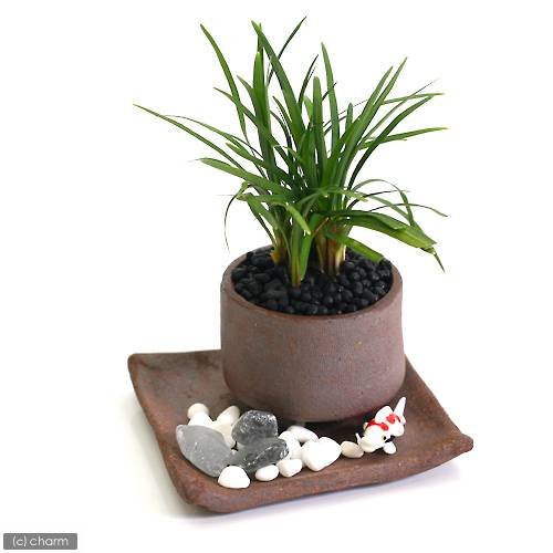 リュウノヒゲを小さな盆栽に! 味わいのある益子焼きの鉢にリュウノヒゲを植え、鉢土表面にはブラックのネオコールで覆いました。 (観葉)山野草盆栽 おまかせ益子焼鉢植え リュウノヒゲ 丸型 小(1鉢)(受け皿付き) 特長 ●リュウノヒゲは濃い緑の葉が美しく、とても丈夫です。 ●クリスタルストーンと白砂利付きです。 ●受け皿付きで置き場所を汚す心配が少なく、気軽に飾れます。 セット内容 ●リュウノヒゲ (おまかせ益子焼 苔BOX 小 丸) × 1 ●アウトレット品 益子焼 苔受皿 浅小 炭化 四角 ミニミニ盆栽鉢 訳あり(サイズ(約):W8.5×D8.5×H1cm) × 1 置き場所 春から秋の鑑賞期間は、1日部屋に飾ったら、2~3日戸外の半日陰で管理し、また1日部屋で楽しむ、というようなサイクルをとっていただくと丈夫に育ちます。また、冬の休眠期は、軒下や玄関など無暖房の部屋で管理しましょう。 水やり 生育期の春から秋には鉢土の表面が乾いたらたっぷりと与えます。回数の目安は、春と秋は1日1回、夏は朝夕2回、冬は数日に1回を基準としてください。 注意 ※画像はイメージです。