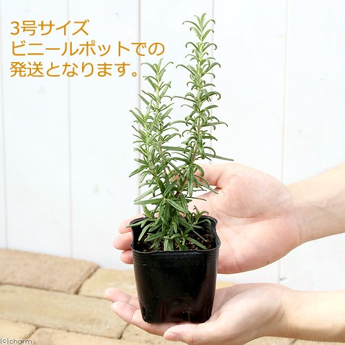リフレッシュ効果が期待できるハーブの代表品種!地中海沿岸が原産のハーブを代表する品種です。松の葉に似たスッキリした香りは、若さを保つ香りとも言われハーブバスなど美容には最適です。花はブルーで可愛らしく、サラダの飾り付けにも利用できます。花壇、鉢植えで楽しめます。暑さや乾燥、病害虫にも強く丈夫に育ちます。葉や茎は肉料理の風味付けに使用します。茎を垂直に伸ばす立性と、横に這うように伸びる匍匐性、半立性があります。ローズマリー(立性) 3号(お買い得5ポットセット)セット内容ローズマリー(立性) 3号ポット苗