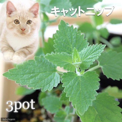 (観葉)ハーブ苗 猫草 キャットニップ コモン 3号(お買い得3ポットセット) 家庭菜園 本州・四国限定[生体]