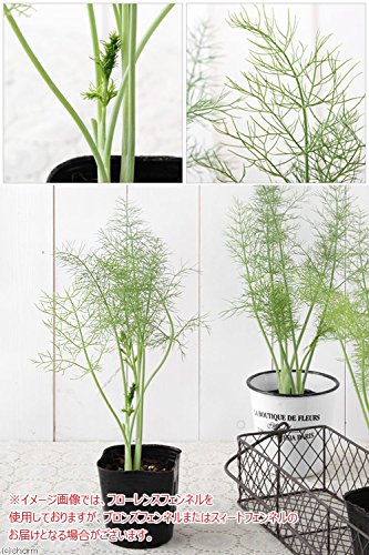 ウサギのおやつにもぴったり!丈夫で放置していてもよく育つ!全草から甘い香りの漂う大型のハーブです。葉は料理の風味づけや入浴剤として利用で・ォます。種はクッキーなどのお菓子に入れたり、ハーブティーに使用したりします。移植を嫌うので、植えつける時は根を傷めないように注意しましょう。※妊娠中の方は使用を避けますが、出産後の母乳の出を良くするといわれています。※ウサギに与える場合 : 消化不良のときの栄養補給や食欲増進などが期待できます。(妊娠時は与えないで下さい。)ハーブ苗 フェンネル(品種おまかせ) 3号(お
