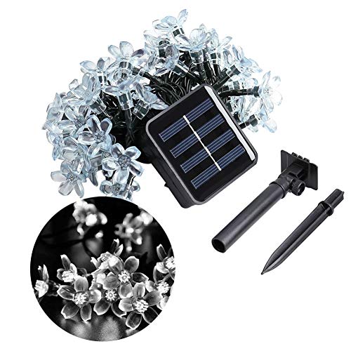 AMAA ソーラー イルミネーションライト ソーラー充電式 花柄 ストリングライト 装飾ライト ハロウィン装飾 クリスマス 学園祭 LED飾り ガーデンライト 50LED 全長6.8M 電飾 飾り クリスマス・ツリー パーティー ベッドルーム アウトドア 結婚式 庭対応 (白)