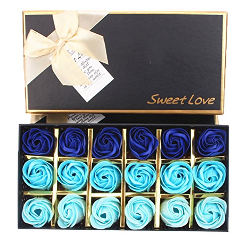 AMAA ソープフラワー バラ 石鹸花 造花 枯れない ギフトボックス付く 母の日 お祝い 誕生日 結婚記念日 ギフト ブルー ピンク レッド 紫 (ブルー 18本)