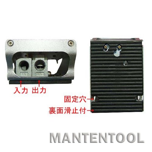 "足踏式で両手がフリーになり、連続作業の場合や両手で物を保持する作業に非常に助かるフットエアースイッチ(フットバルブ・足踏み式スイッチ)です。 操作性も抜群!!足で軽く踏み込めばOK! 本体裏面、踏込ペダル部分には滑止めのラバー付き。 穴が2箇所開いているのでボルト等で固定することも可能です。 差込は通常よく使用されている2分(1/4)サイズです。 ※カプラーは付き属しておりません。 ~仕様~ ・サイズ:幅81×奥行110×高さ52mm ・入力接続口:2分(1/4) ・出力接続口:2分(1/4) ・重量:800g ・製造国:中国 ・PL保険加入商品 ※商品改良の為、仕様・外観は予告なく変更する場合があります。 ※輸入商品に付き、多少のキズや汚れなどがある場合がございます。 フットエアースイッチ(フットバルブ・足踏み式スイッチ)"