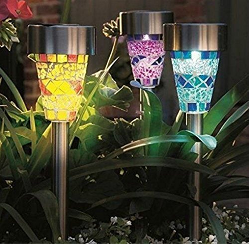 ステンドグラス風 ガーデンライト LED ソーラー 自動点灯 3色