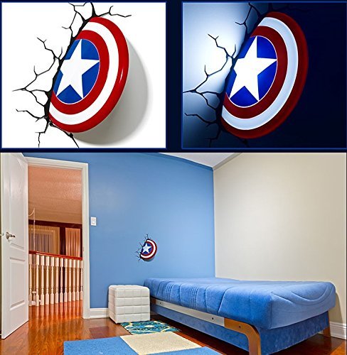 3dライトキャプテンアメリカシールドベッドライトアイアンランプKids LEDランプブックライトLEDライト壁Avengersランプ