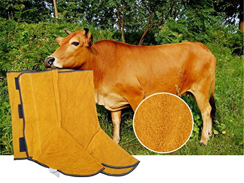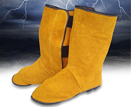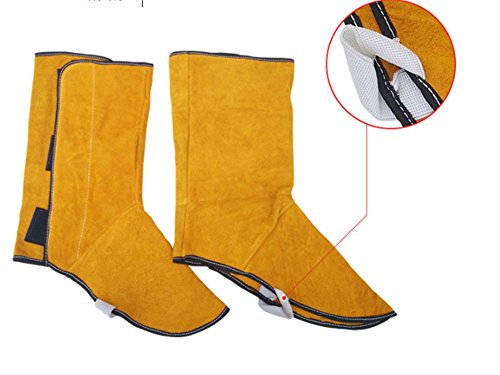 「GeBaoZhen」火の粉を防げ 溶接用 靴 カバー 足カバー 牛本皮 1双入り パイク溶接保護具足カバー (黄)