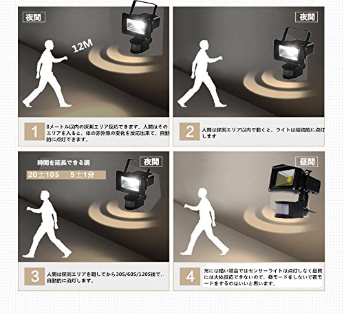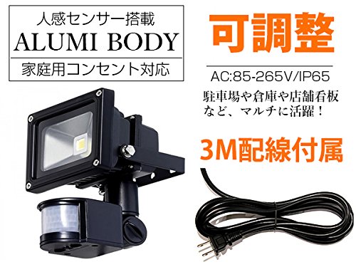 LED投光器 10W20W30W ACコード付 センサーライト 人感 屋外余裕の3mコード 昼光色 防犯ライト 駐車場 倉庫 防水加工 広角 防水 (10W)
