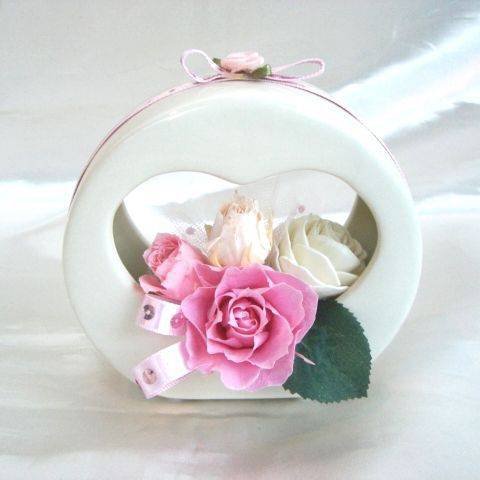 ハートフラワーベース ピンクのバラのアレンジ プリザーブドフラワー