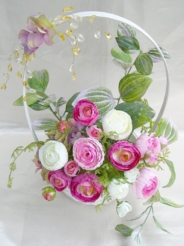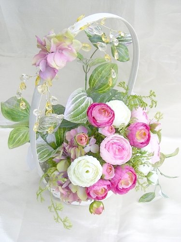 アーティフィシャルフラワー花ギフトラナンキュラスバスケットMサイズアレンジ