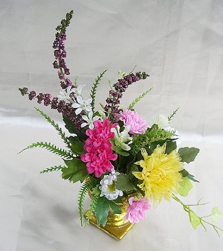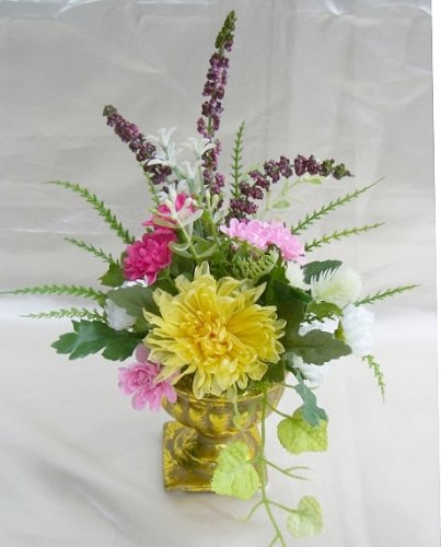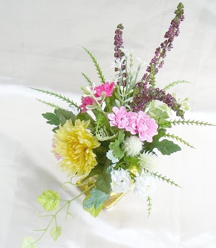 お供え 花 プリザーブドフラワー お仏壇 小さい 仏花 ゴールド 花瓶付 菊 キャンディマム アレンジ