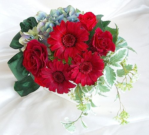 - 花材:プリザーブドローズ・プリザーブドガーベラ・フェイクあじさい
