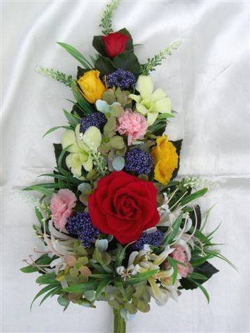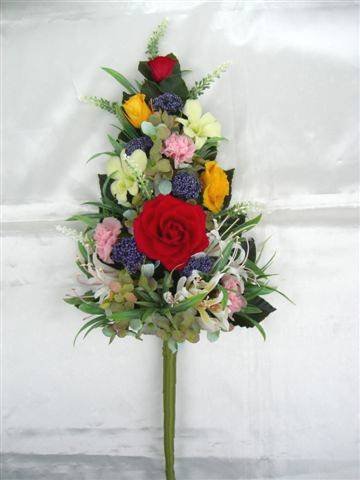 ギフト対応 少し大きめサイズの仏花です。 サイズ:高さ45(うち茎部分が15cm)×幅20×奥行8cm 花材:プリザーブドローズ・プリザーブドデンファレ・プリザーブドライスフラワー・プリザーブドファーガス・ フェイクラベンダー・フェイクアジサイ・フェイクダイアモンドリリー ※花器は商品に含まれません。また、お一つ分の価格となりますので、対でご希望の場合は、数量2としてご注文ください。