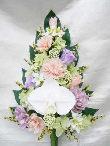 仏花 薄藤と薄桃色の小花と胡蝶蘭 プリザーブドフラワー
